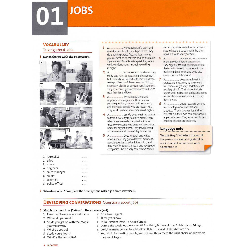 Комплект учебников состоит из рабочей тетради и учебника. Обращаем внимание, что это издание включает в себя DVD и CD и Access Code. Outcomes. Pre-Intermediate. Student's Book+ DVD + Access Code и Outcomes. Pre-Intermediate. Workbook + CD. Особенность данной серии в том, что в основе лежит Лексический подход. Также стоит отметить, что здесь сразу даются диалоги, которые могут происходить в реальной жизни и не похожи на учебные. Дополнительно можно скачать с официального сайта словарь-справочник Vocabulary Builder. Аудиозаписи устных упражнений доступны на сайте издательства по паролю, прилагающемуся в учебнике. Красочной иллюстрации от National Geographic являются отличительной особенностью от других учебников. Учебники предназначены для студентов, которые находятся на уровне A2 и хотят продвинуться к B1. Outcomes Pre-intermediate is for students who are around level A2 and want to progress towards B1.